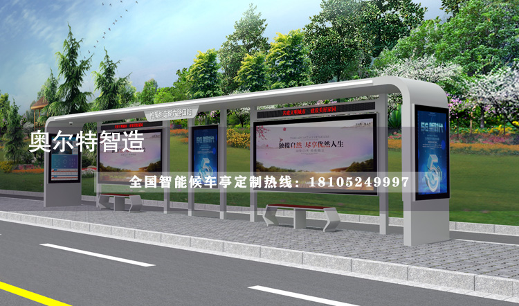 此款雙港灣智慧公交站臺安裝在陜西延安,頂棚增加了燈光亮化,智能語音報站功能、播放廣告、道路情況實時更新等功能,各個項目對公交站臺的需求不一樣,尺寸、材料、功能等都可以定制,承接全國項目,服務熱線:18105249997