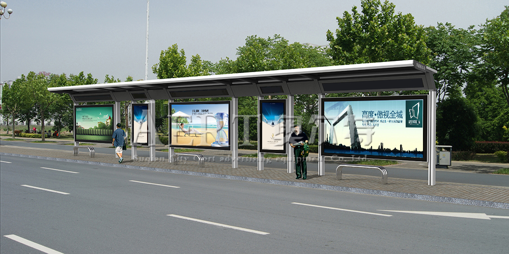 鋁型材公交候車亭顏色多樣,有閃銀色、金色、黑色等,鋁型材公交候車亭不會生銹,鋁型材的材質比不銹鋼要厚,因此鋁型材公交候車亭抗撞擊能力更強。