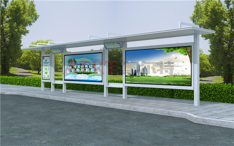 不銹鋼板或鍍鋅板是公交候車亭最主要的材料,也有采用鋁型材的,但比較少見(jiàn)。其他主要材料還有PC耐力板、鋼化玻璃,用在燈箱兩面,就是廣告畫(huà)面外面透明的那層板;鋁塑板,用在頂棚的下面,就是抬頭看到的那部分;鍍鋅板,一般用在公交候車亭頂棚上面和燈箱的主框。